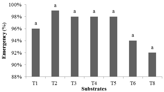Figure-2. Average values of emergence according to the substrates. Same letters do not differ from each other by the Tukey test (P<0.05).