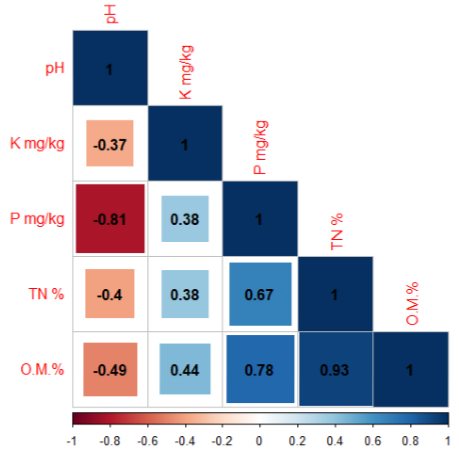 Figure-6. Correlation heatmap between soil parameter under different cropping system at Changunarayan, Bhaktapur, Nepal.