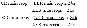 K = (K main crop x K intercrop) K main crop ={Yab Zba} / { (Yaa – Yab) Zab } K intercrop = (Yba Zab) /{ (Ybb – Yba)Zba}