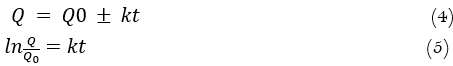 According to Mai and Pathare [18], the time-dependent relationship for the loss of fruit quality may be explained by the zero-order model Equation 4 or first-order model Equation 5 kinetic models: