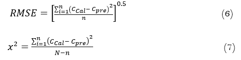 Where N is the number of observations, n is the constant model numbers, and CCal and Cpre are the calculated and predicted value of quality property.
