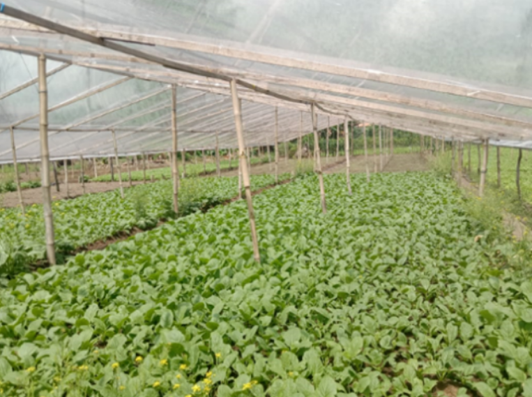 Figure 2. Dense population of green cabbage (b) under the rain shelter.