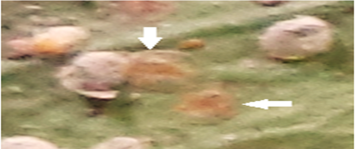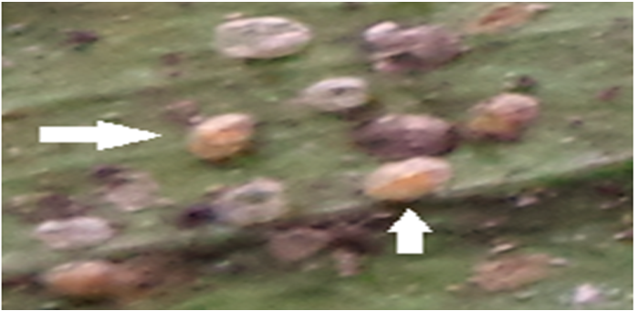 The insects feeding on lower surface of plant leaf and excreting a sweet sticky substance called honeydew. the honeydew falls on the plant or onto plants or structures below the host plant which facilitates the installation and growth of fungi. The fungi spread from one plant to another by water splashed spores and hyphal fragments, and by air-borne spores. The fungus growth it on leaves turned their color to black (Fig. 2).