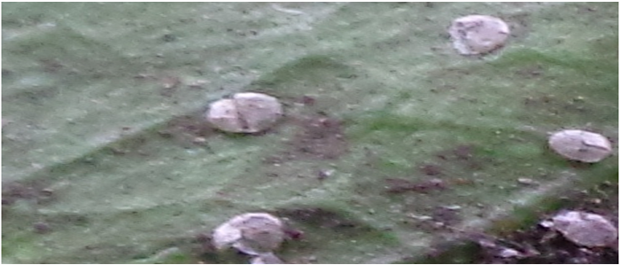 Mycelia settle on the surface of leaves to form a black film which caused slow growth and it make xylem to became brown and leaves rolled to their inner face, with color changing from yellow to brown. In our study we observed that the sooty mold can be completely rubbed off from the leaves or plant surfaces with our finger tips.