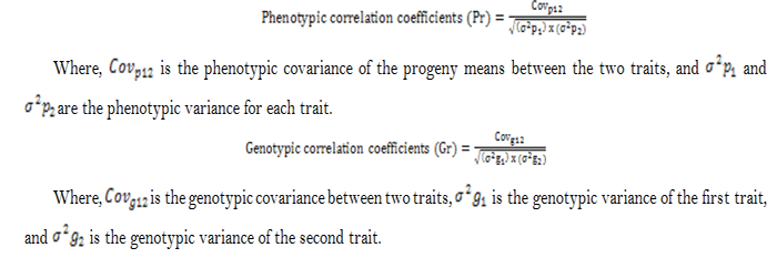 Table-4. Genotypic (above diagonal) and phenotypic (below diagonal) correlations of traits in potato, 2016.