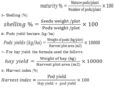 Seven groundnut genotypes were used in the study. Names, botanical type, origin and seed sources of these genotypes are presented in Table 3. The treatments were arranged in a randomized complete block design (RCBD) with four replications. The experimental plot consisted of 6 rows, each was 5 meter long .Spacing was 60 cm between rows and 20 cm within the row, with two seeds per hole. Before sowing seeds were treated with fernisan-D at a rate of 3g/kg of seeds to prevent fungal diseases and insect damage. Sowing date was at (13/July- 25/July) in the first season and (10/July-15/July) in the second season. The experiments were weeded twice, after two weeks, and four weeks from sowing. The crop was harvested after 90 days in each location for each season. During the growing period, samples were taken at 15 days interval until harvest. The plants' samples were randomly taken from one meter a long one of the three eastern rows in the plot.