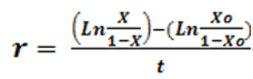 Where r is infection rate, Xo is initial disease severity, x is final disease severity and t is the duration of the epidemic Ln = Natural logarithm.
