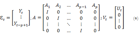 where: Ɛt denotes the dimension of the stacked vector; A represents the dimension of the matrix (Kp x Kp); and Vt represents (KP x 1).