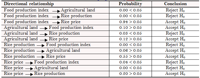 This study contributes to the existing literature by clarifying the causal relationship between food production, agricultural land, rice production and rice price in Thailand and Viet Nam between 1988 and 2017, using a vector autoregressive model..