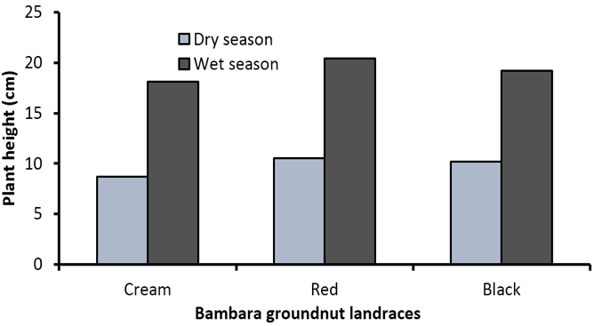 Figure 2. Height of three Bambara nut landraces during 2017/2018 dry and wet season field trails.