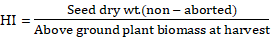 Plants were harvested for estimating various parameters at 50 days after sowing (DAS) i.e. vegetative stage and at 110 DAS i.e. at reproductive stage. Six plants of each treatment were harvested for every fresh as well as dry estimation and records calculated on per gram nodules/roots/leaves dry weight basis (full-fledged developed nodules/roots/leaves of one plant were regarded as one biological repeat). Plant materials were dried in oven at 70°C until they reached steady weight. Dried material was powdered and stored for further analyses. Yield parameters were documented daily from the commencement of flowering till seed growth and maturity stage (110 DAS). Pods/seeds number per plant was estimated by taking average of pods/seeds in six replicates per treatment at crop maturation stage. Harvested plant samples were divided into vegetative and reproductive parts and depending on their dry weights, harvest index (HI) was calculated at 110 DAS (Leport, Turner, Davies, & Siddique, 2006) as follows: