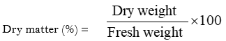 Dry matter (%): The sample of broccoli curd for each treatment was taken and fresh weight was recorded. The samples were then oven dried at 60ºC for 72 hours and weighed again.