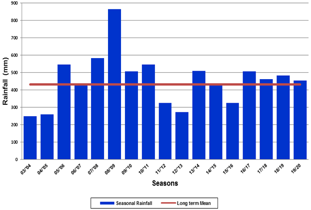 Figure-4. Rainfall for the communal areas for the period from 2003/04 to 2019/20.