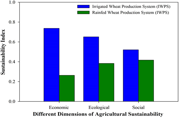 This study is one of very few studies which have investigated the agricultural sustainability (in all economic, ecological, and social dimensions) of both irrigated and rainfed wheat production systems in semi-arid environments using a multi-criteria decision analysis.
