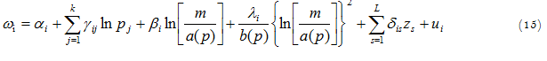 To control for varying preference structures and heterogeneity across households, demographic variables (z) are incorporated into the QUAIDS model through the linear demographic translating method (Pollak & Wales, 1981).