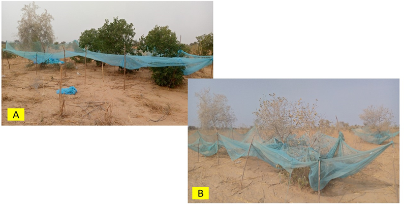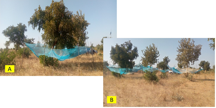 Figure 1. Perceived view of litter traps.  A. under P. reticulatum and B. under C. glutinosum.