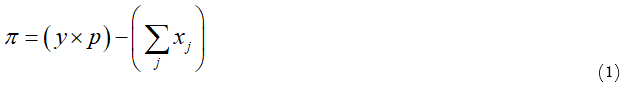 Where π is net returns, y is rice yield, p is price of paddy, x’s are the cost items where j is an element of seed, fertilizer, pesticide, labor, irrigation, land, and others. Using the farm budget structure, the costs of rice production and profitability of aromatic rice farming were estimated across provinces.