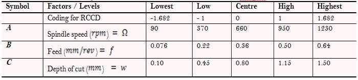 Table-1. Physical and coded values of factors in RCCD for both tool-workpiece combination