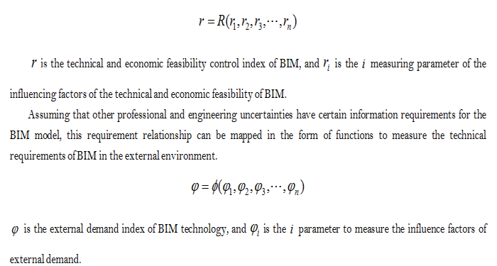 Because the economic feasibility is affected by many factors and has much uncertainty, the economic feasibility of BIM technology is the function of its influencing factors, which can be mapped through the form of function. The mathematical expression is as follows: