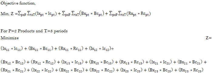 Total cost is usually included in solving APP problems in most practical decision making. The proposed linear programming consists of a single objective function aiming to minimize the total cost of APP including regular time production cost, backorder cost, inventory cost. The objective function is given below: