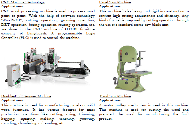 Figure-3. Applications ofexisting machinery and technologies used in furniture industry of Bangladesh.
