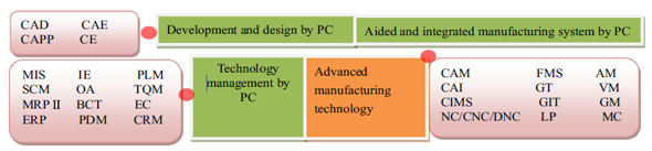 The two main categories of Digital Manufacturing are CNC and Rapid Prototyping. Common operations like drilling, milling, engraving, laser cutting, wood routers, water jet machining, etc. are processed in the CNC machinery. Intricate and simple geometric designed shapes are produced by Rapid Prototyping technology. Figure 5 demonstrates the advanced manufacturing systems with others subsystems like MIS, SCM, MRP, ERP, CIMS, CAI, LP, GIT, MC, AM, VM, etc. [9].