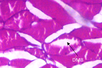 Keys: atrophy of muscle bundles (AMB), degeneration in muscle bundles (DMB), parasite cyst (PC), splitting of muscle bundles (SMB), splitting of muscle myofibrils (SMM).