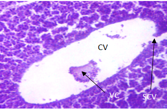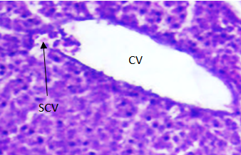 Plate-1.3b. Photomicrograph of liver section in H. fasciatus of Igun reservoir (Mag. X100).