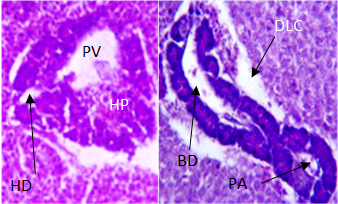 Plate-1.3d. Photomicrograph of liver section in H. fasciatus of Igun reservoir (Mag. X100).
