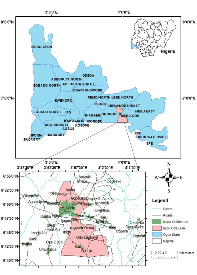 This work took place in Ijebu Ode city, which is located some 60 kilometres north-west of Lagos, the second-most populated city in Nigeria's Ogun State, with a 192 km2 land area and a population estimate of 154,032 [15], (see Figure 1).