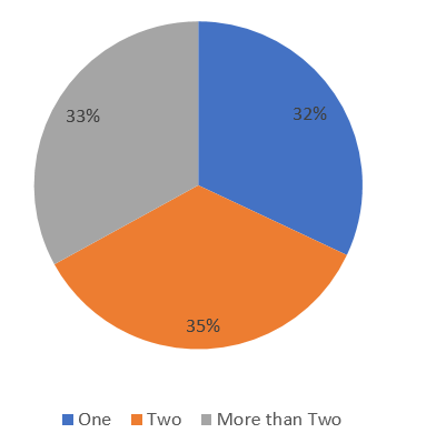 In addition, for proper ventilation, 32% said their bedrooms lacked windows on two walls to allow for proper ventilation (see Figure 3). This, by implication, will likely induce discomfort owing to poor ventilation, which increases the likelihood of the spread of airborne diseases among the occupants. Similarly, to further enhance adequate ventilation, 10% of the houses reported an absence of fans in their houses, which is key in augmenting the already poor natural ventilation. Regarding overcrowding, 33% of the homes had over two individuals living in a room (see Figure 4). Overcrowding is generally seen as more of a public health threat owing to the increasing chances it creates for the spread of infectious diseases such as tuberculosis, scabies, and other diseases transmissible by contact. Among the predisposal factors related to the communicability of scabies are personal hygiene and overcrowding [18]. Other infectious diseases generally related to overcrowding include tuberculosis [19], meningitis [20], and measles [21]. Overall, these outcomes seem to be in sync with the study by Michael [22], who in his work on the effect of water supply, sanitation, and housing on health reported the rates of respiratory, eye, and skin disorders to be higher in crowded houses.