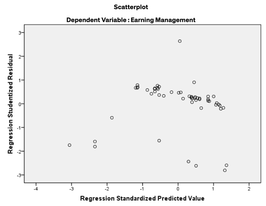 The heteroscedasticity test aims to test whether there is an inequality of variance from the residuals of one observation to another in the regression model by using scatterplots graphs. A good regression model is one where heteroscedasticity does not occur. If there are points that form a certain pattern on the scatterplot graph, it indicates that heteroscedasticity has occurred. If there is no clear pattern, and the points are spread above and below the number 0 on the Y axis, there is no heteroscedasticity. The points in the scatterplot graph in Figure 2 are randomly distributed, although there are a few parts that converge. They do not form a certain pattern, so it can be said that the four variables in this study do not have heteroscedasticity problems.