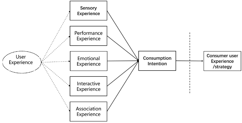 Ning (2019) got the same results that the interaction between consumers and products generated corresponding pleasure or interest, which promoted consumers' consumption intention or consumption behavior. Consumers paid attention to associate experience when purchasing products, and it significantly and positively impacted consumers' consumption behavior (Cui & Qu, 2020). At the same time, it was also found that the associate experience of smart appliances had the greatest positive impact on consumption intention, Cui and Qu (2020) obtained the results consistent with these findings. Then followed by emotional experience, interactive experience, and performance experience, and sensory experience, which had the most negligible effect on consumption intention. However, Lai (2019) found that emotional experience greatly impacted consumption intention.