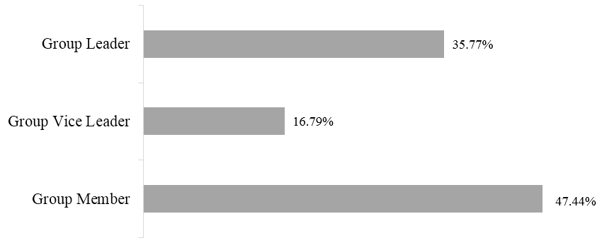 The status of all respondents are shown in Figure 2, There were 137 participants responding to the needs assessment to enhance the facilitator's technique for community enterprises questionnaire. As classified by position, group leader of 49 respondents accounted for 35.77%, group vice leader of 23 respondents accounted for 16.79% and group member of 65 respondents accounted for 47.44%.