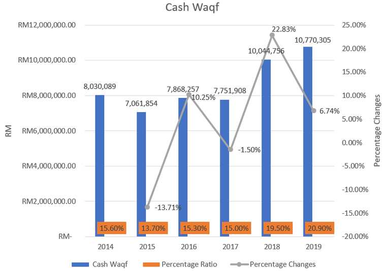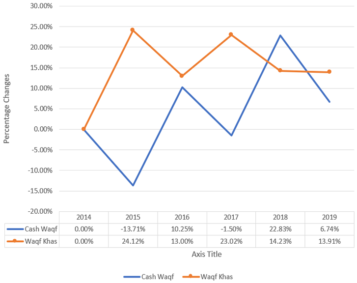 Figure 3. Percentage change in cash waqf and waqf khas of PWS.