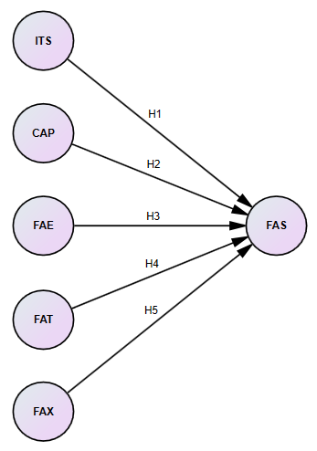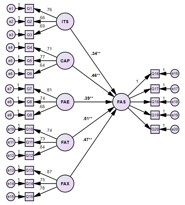 Note: ITS refers to information technology solutions, FAE refers to forensic accounting education, FAT refers to forensic accounting training, FAX refers to forensic accountant experiences, FAS refers to the successful implementation of forensic accounting.