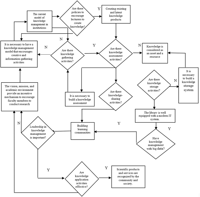 Nowadays, educational institutes or universities not only act as training institutions but also play a chief driving role in a student’s research activities. In addition to training functions, universities are also centers for knowledge creation, technology transfer, and innovation (Ngoc-Tan & Gregar, 2019). In recent years, numerous studies on knowledge management have been conducted (Ferraresi, Quandt, Santos, & Frega, 2012; Gunjal, 2005; Putra & Febriani, 2017; Sudibjo, Aulia, & Harsanti, 2022). However, studies on knowledge management models mainly focus on the issues of acquiring, creating, storing, sharing, developing, diffusing, and deploying knowledge (Abu-Naser, Al Shobaki, & Abu Amuna, 2016; Rivera & Rivera, 2016; Sonmez Cakir & Adiguzel, 2020), but there is a dearth of studies on knowledge management with community practice and big data (Pham et al., 2021). This study was conducted with the objective of performing a comprehensive literature review in the field of knowledge management and the knowledge management model in universities and its impact on the research capacity at universities in Hanoi, Vietnam. The authors then identified the major challenges in the field of knowledge management in universities. Finally, several implications for managers and practitioners were identified and are proposed herein.