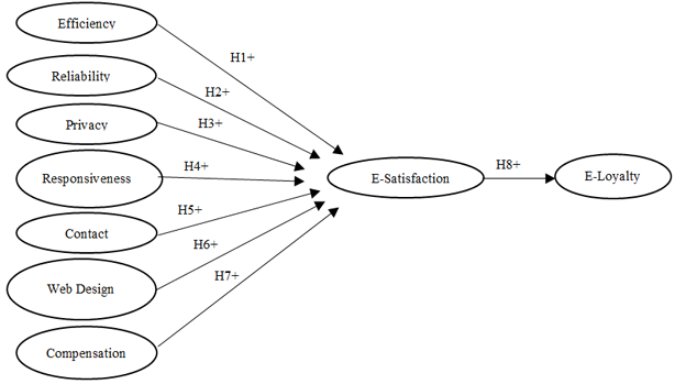 Regarding the context of this research and with previous empirical studies, researcher have classified the eSQ dimensions as well as assessing them as independent variables that influence satisfaction. With a number of mergers explained in the method section, we determine the dimensions of eSQ that affect eSat, and propose the following hypotheses:
