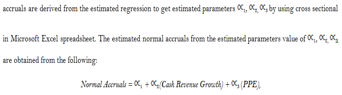 There are two types of approaches that have been used in Jones model such as (i) time series: the sample data used past history for the company and (ii) cross sectional: used industry at one-point time. The discretionary