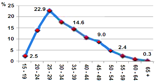 Figure-1 . The relative distribution of Egyptian migrants according to age group.
