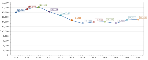 Figure-11.  Number of Egyptians residing abroad during the period 2007–2019.