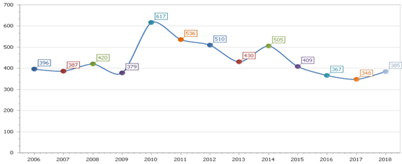 Table-1. Number of Egyptian scientific delegates abroad by sector during the period 2008–2018.