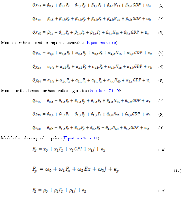 Demand for cigarettes manufactured at a domestic factory is presented in Equations 1 to 3.