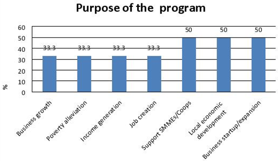 This program is implemented by most of the local municipalities as well as the district municipality in Zululand. The municipalities try to close the gaps that developed from the former government through this program. As pointed out by Pretorius and Schurink (2007) disparities in socio- economic environment that was developed by the former government demanded the post government to set the priorities of the local government responsibility. The local government had to turn its resources to a meaningful tool for dealing with poverty and poor development. Rodrigueze-Pose and Tijmstra (2009) illustrates that the main objective of LED strategies are based on the promotion of economic growth but it also have ultimate goals of poverty alleviation and consideration of the previously disadvantaged communities both economically and socially.
