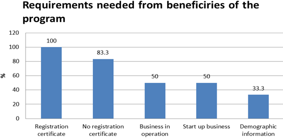 The figure hereunder indicates the responses by respondents on what was required from them in order to qualify for the service.