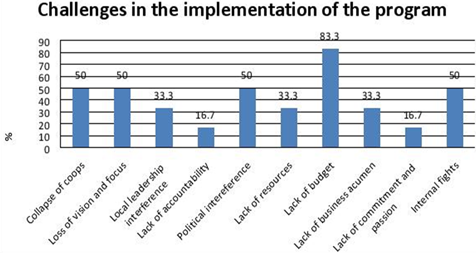 The figure hereunder indicates the responses by the respondents on what was identified as the challenges encountered in the implementation of the program.