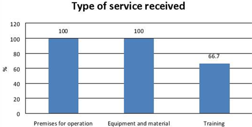 The figure hereunder indicates the responses by respondents on the type of services received from the program.