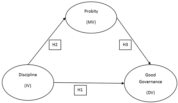 As the findings and conclusion depicts, it is clear that in determining the conceptual framework of the lack of discipline and probity as causes of good governance practice in Ghana, the following are recommended and proposed as appropriate for future research. Discipline is an independent variable (IV), Probity is a mediating variable (MV), and Good Governance is the dependent variable (DV). A proposed conceptual framework/model is as below: