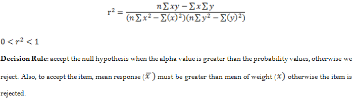 The data collected for the study would be presented in table and analyzed using frequency distributions and percentage. The Pearson product moment correlation coefficient will be employed in analyzing the statistical data with the aim of establishing the strength of relationship between the dependent and independent variables. Therefore, the three hypotheses; H01, H02 and H03 will be tested using Pearson product moment correlation.