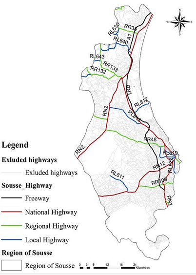 Figure-1(a). Road network in the regions of Sousse.
